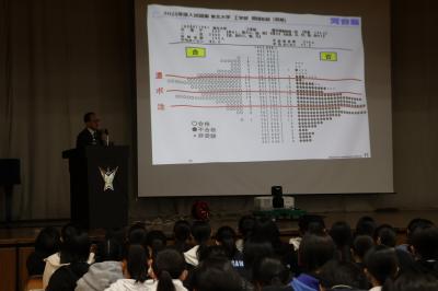 講演の中で「努力して成功すれば自信になる。努力して失敗すれば経験になる」という言葉を紹介していただき、努力することと挑戦することの大切さをお話いただきました。学習習慣の確立や隙間時間の活用、計画的な学習など受験勉強に限ったことではなく、将来、社会人として職業人として生きていくために必要な能力を磨くことが自分の進路実現やキャリア形成につながることを教えていただきました。