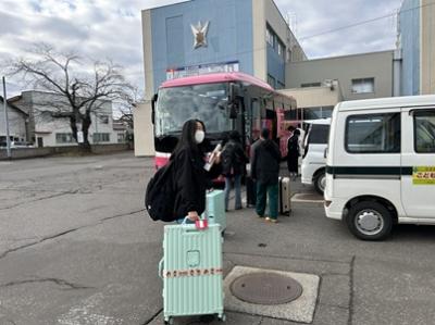 出発は12月23日(火)。多くの教職員に見送られながらバスで学校を出発し、新青森駅から新幹線で仙台空港へ向かいました。
