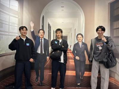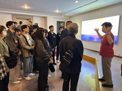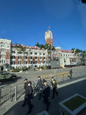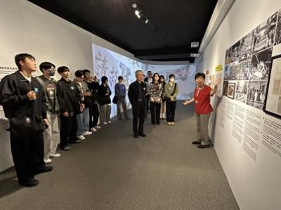 研修2日目は、まず台湾の総統府を訪問しました。厳重な警備のもと、現在も政治の中心として機能する建物で、日本統治時代に建設された旧台湾総督府庁舎が利用されています。館内には台湾の歴史を紹介する展示のほか、最新技術を用いたバーチャル・フォトスポットも設置されていました。