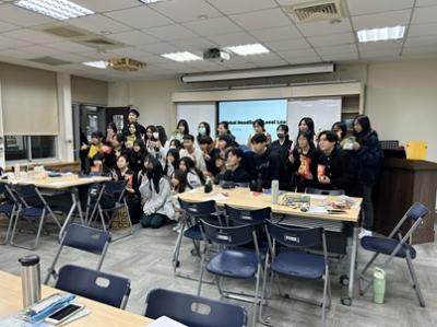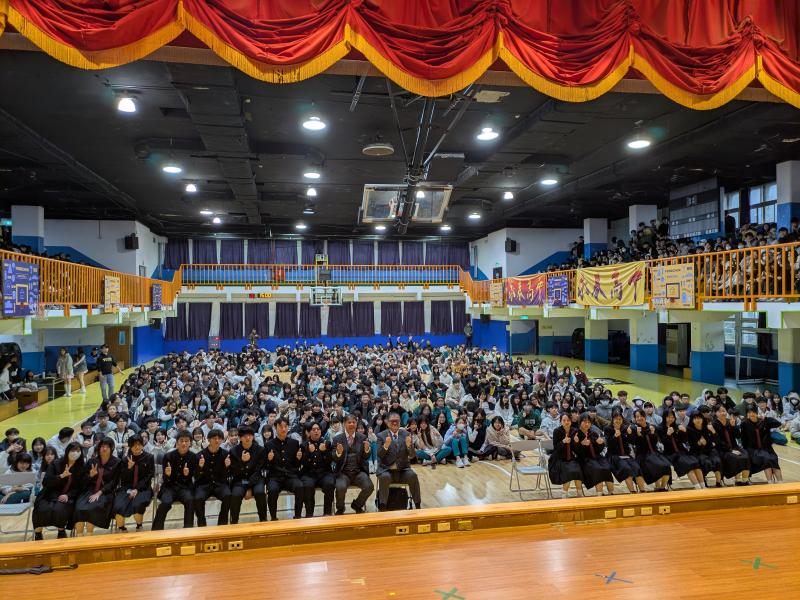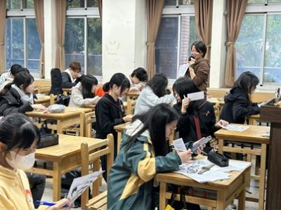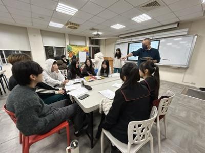 研修4日目は、交流校である永春高級中学を訪問しました。日本文化紹介の意味を込め、生徒は制服で参加しました。到着すると校長先生や多くの生徒が温かく迎えてくださいました。最初に英語の授業に参加し、台湾のスナック菓子を手に取りながら英語で交流しました。