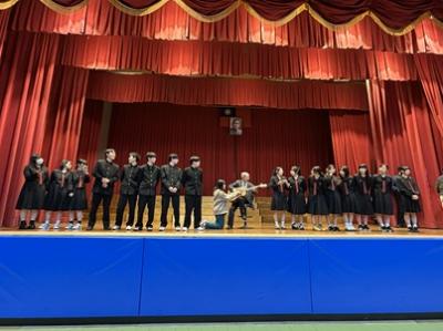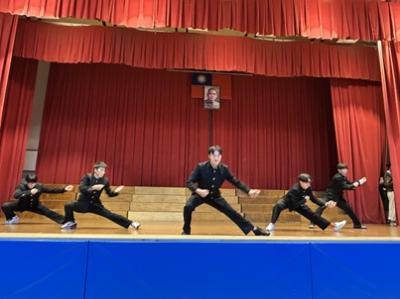 続いて歓迎式が行われ、体育館いっぱいに集まった生徒たちが熱烈に歓迎してくれました。校長先生の挨拶や記念品交換の後、両校の生徒による歌やダンスのパフォーマンスが披露され、大いに盛り上がりました。最後に全員で記念写真を撮影しました。