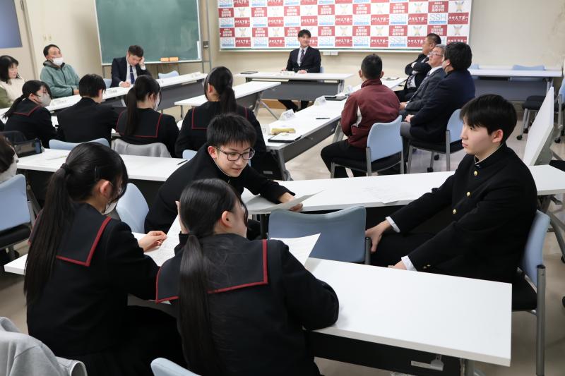信念を貫くことの尊さや基礎基本の復習の大切さを改めて確認する機会をいただきました。後半は佐々木さんにも参加していただいて、津軽地域の医療課題についてグループ討議を行いました。五所川原市内在住の生徒と西津軽郡在住の生徒でも医療課題の認識が異なることがわかり、津軽地域というくくりであっても医療課題は複雑であり、簡単には解決の答えが出ないということを改めて実感しました。今現在行われている医療施策についてもっと調べて、どのように工夫すれば地域医療を持続していけるのか受験を通じて深めていかなければいけないことを全員で共有しました。